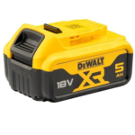 Batería de carril XR 18V Li‑Ion 5Ah de la marca DeWALT, diseñada para todas las herramientas de la serie 18V XR y pensada para uso profesional intensivo en obra, taller y montajes de larga duración. Ofrece una autonomía ampliada frente a baterías de 2Ah–4Ah, manteniendo un tamaño y peso similares, ideal para trabajos exigentes de instalación, montaje y mantenimiento.