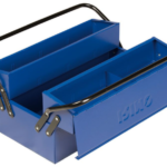 Caja metálica con 2 asas ergonómicas tubulares para fácil apertura y transporte.