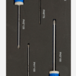 Cubre 1/3 de bandeja estándar (aprox. 39x18x4,4 cm), con 5 posiciones fijas para destornilladores Phillips.