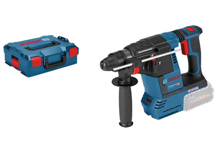 • Sistema L-BOXX: maletín 136 apilable (363 x 446 x 152 mm) + inserto específico GBH 18V-26.