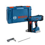 Clavadora BITURBO profesional Bosch GNB 18V-38 sin escobillas para fijación directa de guías de acero en hormigón y metal, con tecnología sin cartuchos de gas (solo batería ProCORE18V) y cargador capacidad 22 clavos. Clavos homologados Ø2,7-3,0 mm longitud 13-38 mm (hormigón) / 13-19 mm (acero), certificación ETA/ICC para máxima fiabilidad, ideal para albañiles e instaladores de canales, presentada en L-BOXX XL modular.