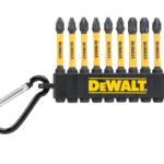 Juego de 10 puntas FLEXTORQ de 57 mm de la marca DeWALT con mosquetón, diseñado para atornillado profesional con alto par y uso intensivo en obra, montaje y mantenimiento. Las puntas incorporan tecnología FLEXTORQ que absorbe picos de torsión, aumentando hasta 200 veces la vida útil frente a puntas estándar, presentado en llavero con mosquetón para fácil transporte.