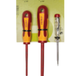 Juego 2 Destornilladores 1000V + Tester Irimo: Punta templada Cr-V aislada VDE ranura cruz/plana sin resbalones + tester neón 150-250V.